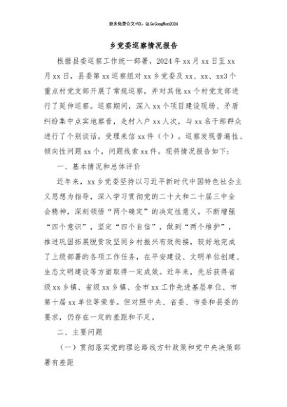 / 【七哥公文】2024年:乡党委巡察情况报告+更多免费公文+VX:QiGeGongWen2024