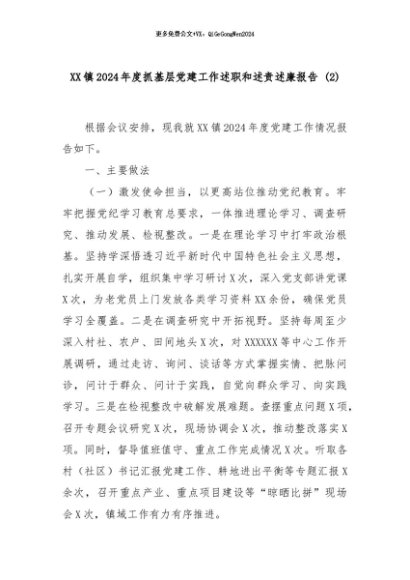 【七哥公文】2024年:XX镇2024年度抓基层党建工作述职和述责述廉报告 (2)+更多免费公文+VX:QiGeGongWen2024