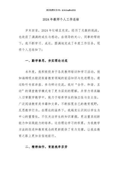 / 【七哥公文】2024年:2024年教师个人工作总结+更多免费公文+VX:QiGeGongWen2024