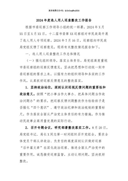 / 【七哥公文】2024年:2024年度选人用人巡查整改工作报告+更多免费公文+VX:QiGeGongWen2024