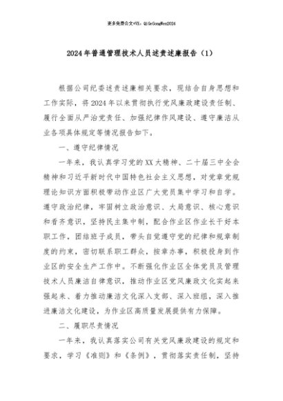 / 【七哥公文】2024年:2024年普通管理技术人员述责述廉报告(1)+更多免费公文+VX:QiGeGongWen2024