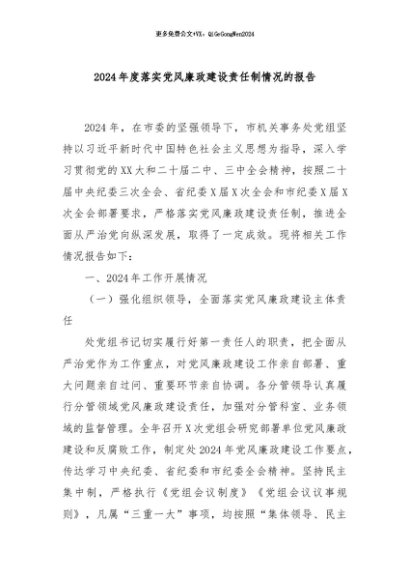 / 【七哥公文】2024年:2024年度落实党风廉政建设责任制情况的报告+更多免费公文+VX:QiGeGongWen2024