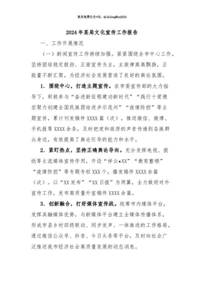 / 【七哥公文】2024年:2024年某局文化宣传工作报告+更多免费公文+VX:QiGeGongWen2024
