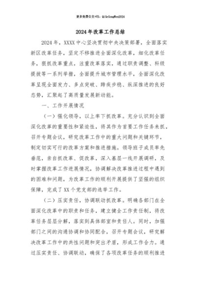 【七哥公文】2024年:2024年改革工作总结+更多免费公文+VX:QiGeGongWen2024