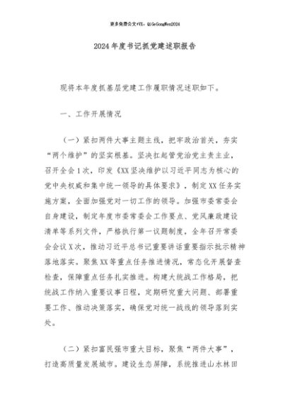 / 【七哥公文】2024年:2024年度书记抓党建述职报告+更多免费公文+VX:QiGeGongWen2024