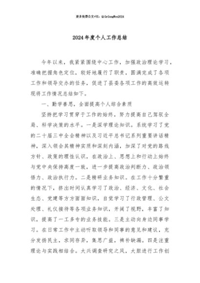 / 【七哥公文】2024年:2024年度个人工作总结+更多免费公文+VX:QiGeGongWen2024