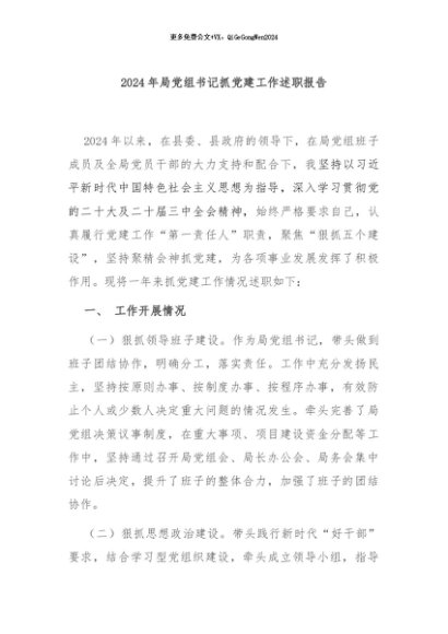 / 【七哥公文】2024年:2024年局党组书记抓党建工作述职报告+更多免费公文+VX:QiGeGongWen2024