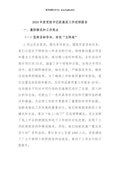 / 【七哥公文】2024年:2024年度党组书记抓基层工作述职报告+更多免费公文+VX:QiGeGongWen2024