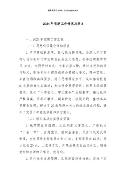 / 【七哥公文】2024年:2024年党建工作情况总结3+更多免费公文+VX:QiGeGongWen2024