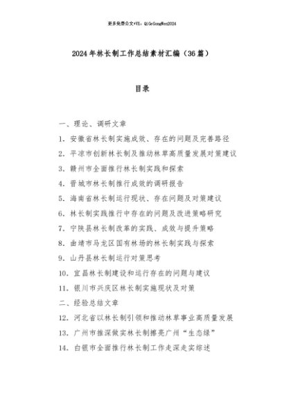 / 【七哥公文】2024年:(36篇)2024年林长制工作总结素材汇编+更多免费公文+VX:QiGeGongWen2024