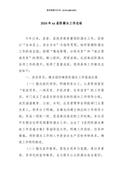 / 【七哥公文】2024年:2024年xx县防溺水工作总结+更多免费公文+VX:QiGeGongWen2024