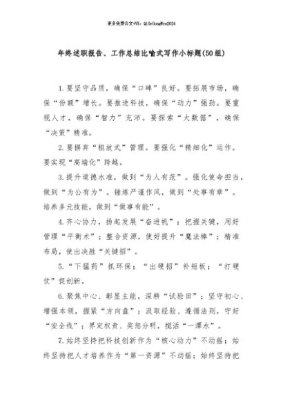 / 【七哥公文】2024年:(50组)年终述职报告、工作总结比喻式写作小标题+更多免费公文+VX:QiGeGongWen2024