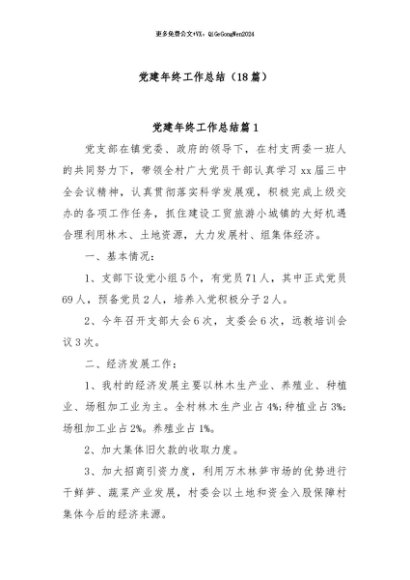 / 【七哥公文】2024年:(18篇)党建年终工作总结+更多免费公文+VX:QiGeGongWen2024