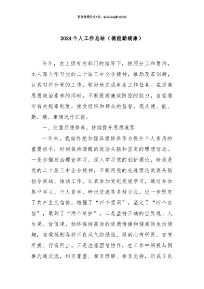 / 【七哥公文】2024年:2024个人工作总结(德能勤绩廉)+更多免费公文+VX:QiGeGongWen2024