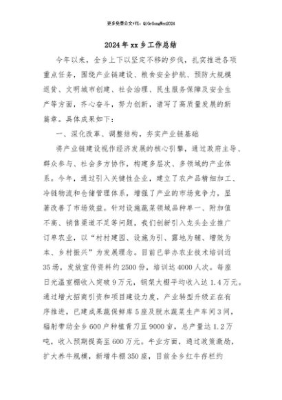 【七哥公文】2024年:2024年xx乡工作总结+更多免费公文+VX:QiGeGongWen2024