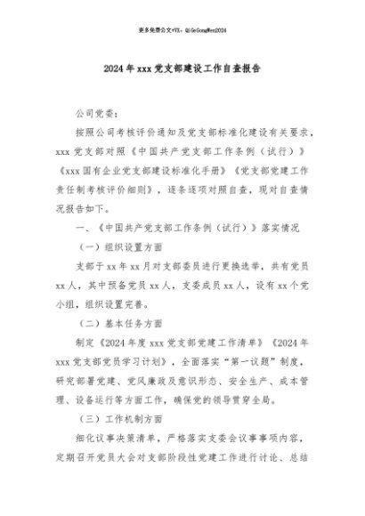 / 【七哥公文】2024年:2024年xxx党支部建设工作自查报告+更多免费公文+VX:QiGeGongWen2024