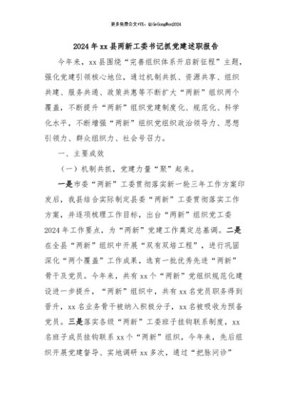 / 【七哥公文】2024年:2024年xx县两新工委书记抓党建述职报告+更多免费公文+VX:QiGeGongWen2024