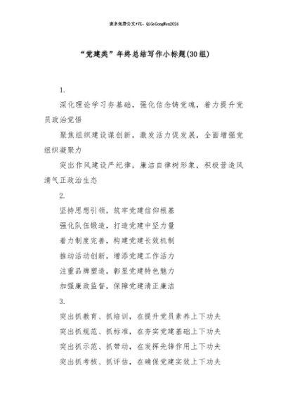 / 【七哥公文】2024年:(30组)“党建类”年终总结写作小标题 (1)+更多免费公文+VX:QiGeGongWen2024