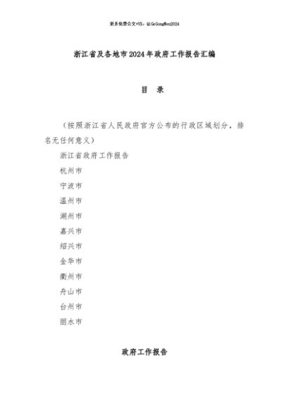 / 【七哥公文】2024年:浙江省及各地市2024年政府工作报告汇编+更多免费公文+VX:QiGeGongWen2024