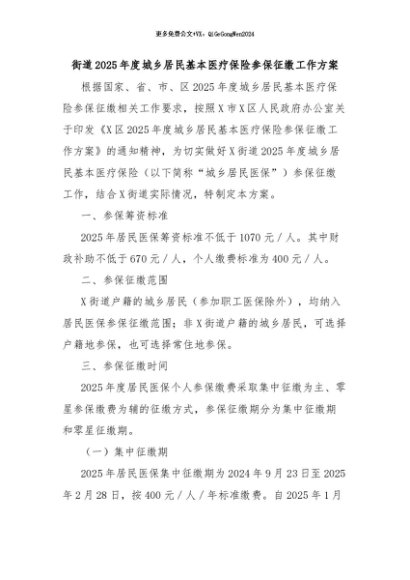【七哥公文】2024年:街道2025年度城乡居民基本医疗保险参保征缴工作方案+更多免费公文+VX:QiGeGongWen2024