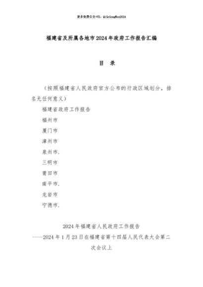 / 【七哥公文】2024年:福建省及所属各地市2024年政府工作报告汇编+更多免费公文+VX:QiGeGongWen2024