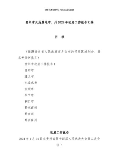 / 【七哥公文】2024年:贵州省及所属地市、州2024年政府工作报告汇编+更多免费公文+VX:QiGeGongWen2024