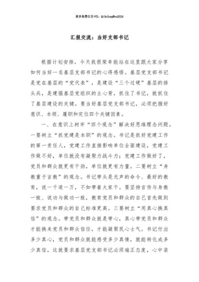 【七哥公文】2024年:汇报交流:当好支部书记+更多免费公文+VX:QiGeGongWen2024