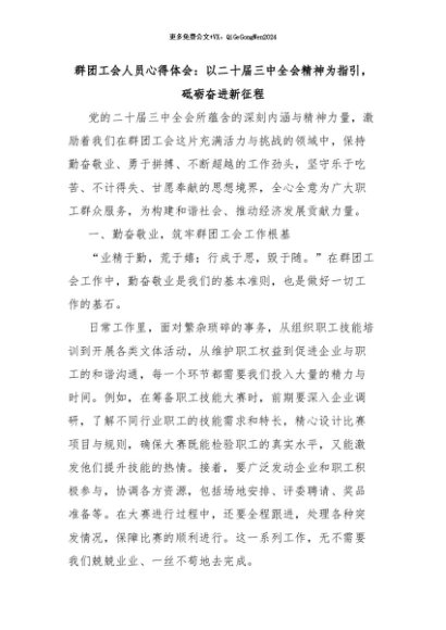 【七哥公文】2024年:群团工会人员心得体会:以二十届三中全会精神为指引,砥砺奋进新征程+更多免费公文+VX:QiGeGongWen2024