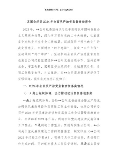 / 【七哥公文】2024年:某国企纪委2024年全面从严治党监督责任报告+更多免费公文+VX:QiGeGongWen2024