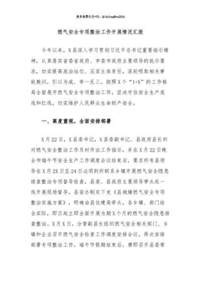 / 【七哥公文】2024年:燃气安全专项整治工作开展情况汇报+更多免费公文+VX:QiGeGongWen2024