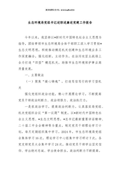 / 【七哥公文】2024年:生态环境局党组书记述职述廉述党建工作报告+更多免费公文+VX:QiGeGongWen2024