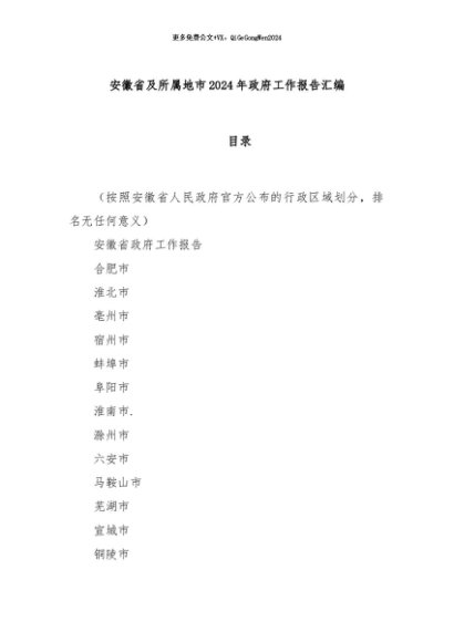 / 【七哥公文】2024年:安徽省及所属地市2024年政府工作报告汇编+更多免费公文+VX:QiGeGongWen2024