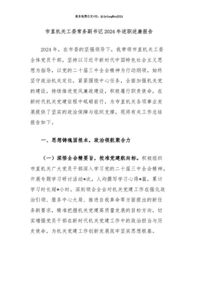/ 【七哥公文】2024年:市直机关工委常务副书记2024年述职述廉报告+更多免费公文+VX:QiGeGongWen2024