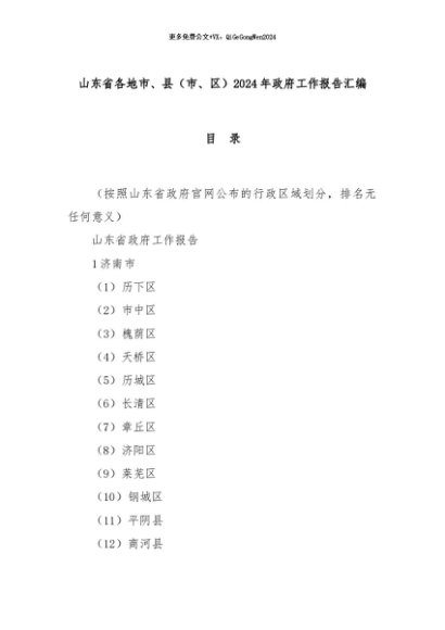 【七哥公文】2024年:山东省各地市、县(市、区)2024年政府工作报告汇编+更多免费公文+VX:QiGeGongWen2024