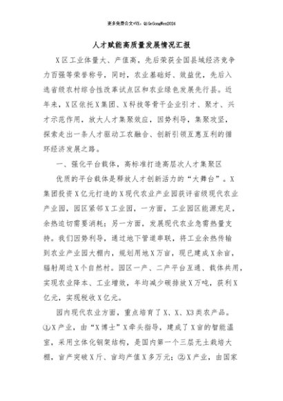 / 【七哥公文】2024年:人才赋能高质量发展情况汇报+更多免费公文+VX:QiGeGongWen2024