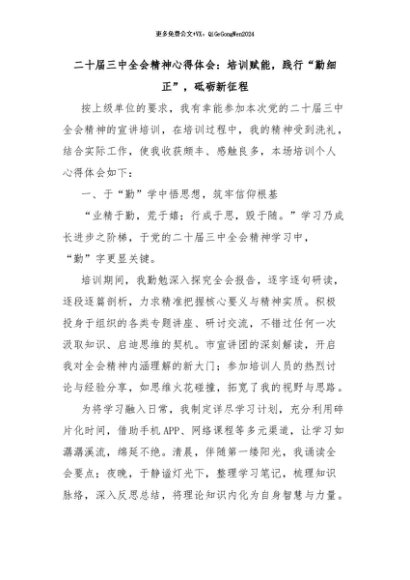 【七哥公文】2024年:二十届三中全会精神心得体会:培训赋能,践行“勤细正”,砥砺新征程+更多免费公文+VX:QiGeGongWen2024