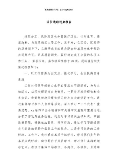 / 【七哥公文】2024年:区长述廉述职报告+更多免费公文+VX:QiGeGongWen2024