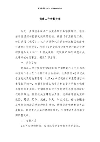 / 【七哥公文】2024年:党建工作考核方案+更多免费公文+VX:QiGeGongWen2024