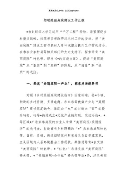 / 【七哥公文】2024年:妇联美丽庭院建设工作汇报+更多免费公文+VX:QiGeGongWen2024