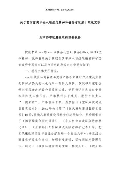 【七哥公文】2024年:关于贯彻落实中央八项规定精神和省委省政府十项规定以及市委市政府规定的自查报告+更多免费公文+VX:QiGeGongWen2024