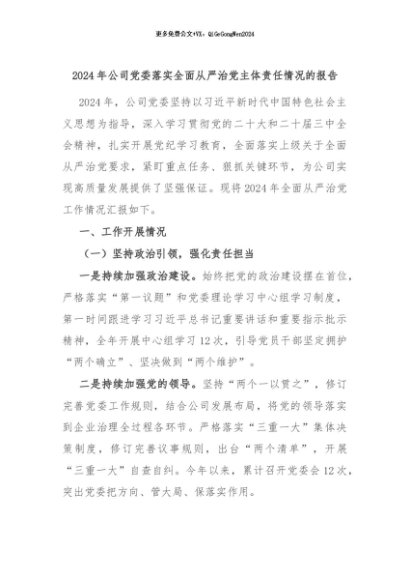 【七哥公文】2024年:2024年公司党委落实全面从严治党主体责任情况的报告+更多免费公文+VX:QiGeGongWen2024