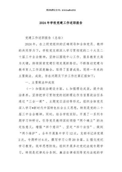 / 【七哥公文】2024年:2024年学校党建工作述职报告+更多免费公文+VX:QiGeGongWen2024