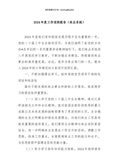 / 【七哥公文】2024年:2024年度工作述职报告(林业系统)+更多免费公文+VX:QiGeGongWen2024