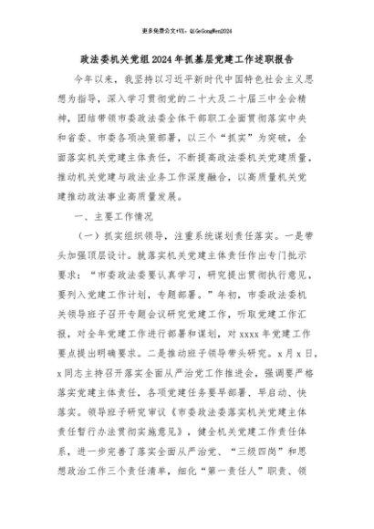 / 【七哥公文】2024年:政法委机关党组2024年抓基层党建工作述职报告+更多免费公文+VX:QiGeGongWen2024