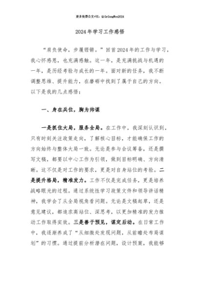 / 【七哥公文】2024年:2024年学习工作感悟+更多免费公文+VX:QiGeGongWen2024