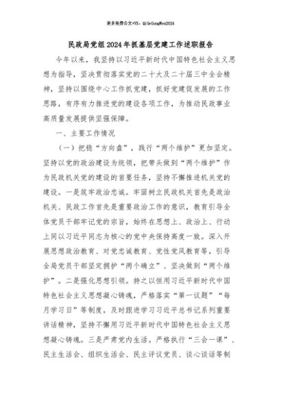 / 【七哥公文】2024年:民政局党组2024年抓基层党建工作述职报告+更多免费公文+VX:QiGeGongWen2024