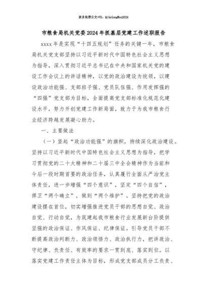 / 【七哥公文】2024年:市粮食局机关党委2024年抓基层党建工作述职报告+更多免费公文+VX:QiGeGongWen2024