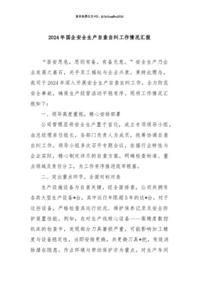 / 【七哥公文】2024年:2024年国企安全生产自查自纠工作情况汇报+更多免费公文+VX:QiGeGongWen2024