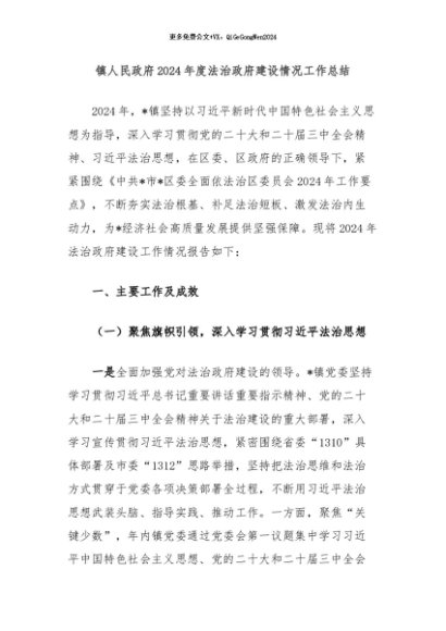 / 【七哥公文】2024年:镇人民政府2024年度法治政府建设情况工作总结+更多免费公文+VX:QiGeGongWen2024