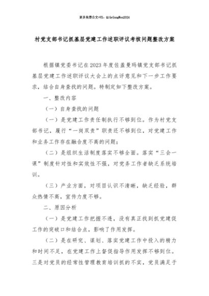 【七哥公文】2024年:村党支部书记抓基层党建工作述职评议考核问题整改方案+更多免费公文+VX:QiGeGongWen2024